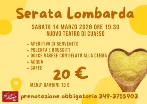💚 SERATA LOMBARDA 💚 SABATO 14 MARZO 💚APERITIVO DI BENVENUTO 🥂POLENTA E BRUSCITT🌽 DOLCE VARESE CON GELATO ALLA CREMA 🥧 ACQUA E CAFFÈ ☕SOLO 20€😱PER INFO 349-3755903⚠️ PRENOTAZIONE OBBLIGATORIA ENTRO GIOVEDI 12 MARZO 😉